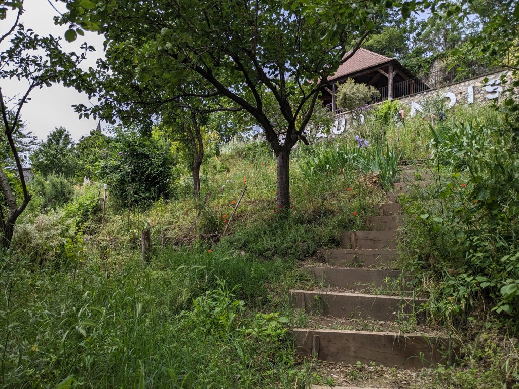 Cet article fait suite à l’article Formation « Compostage » au Jardin de l’Île d’Amour. Ce dimanche, le 9 juin au matin, a eu lieu la troisième demi-journée de la formation intitulée « Compostage et Jardin zéro déchet » organisée et financée par la Ville de Grenoble à destination des jardins collectifs et partagés de la ville. Cette session, animée avec enthousiasme, compétence et pédagogie par Meiyna Vernet des Jardins Vivants, s’est tenue dans le splendide Jardin des Cairns. Il est situé sur les pentes de la Bastille, à quelques escaliers au-dessus de la fontaine du Lion et du Serpent.