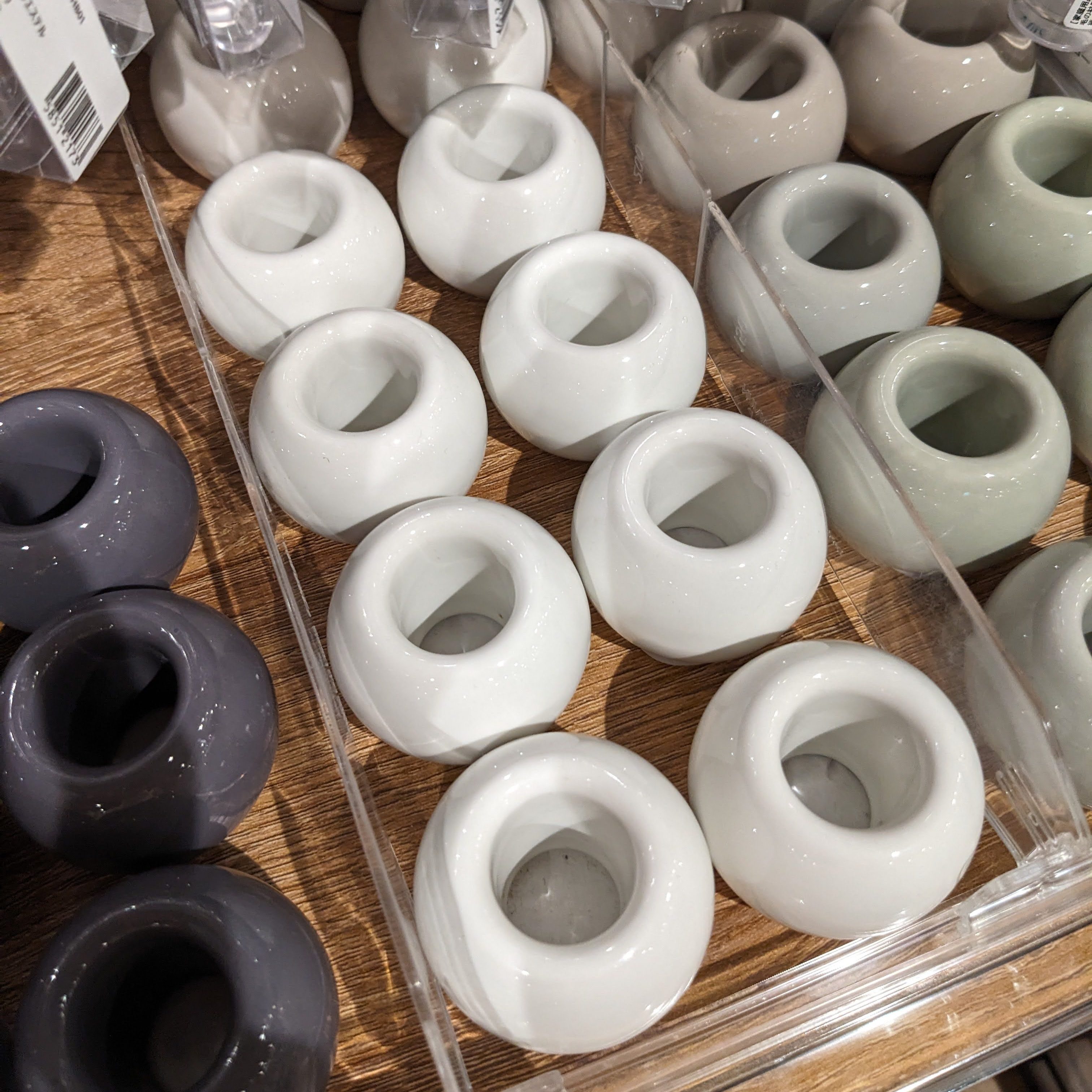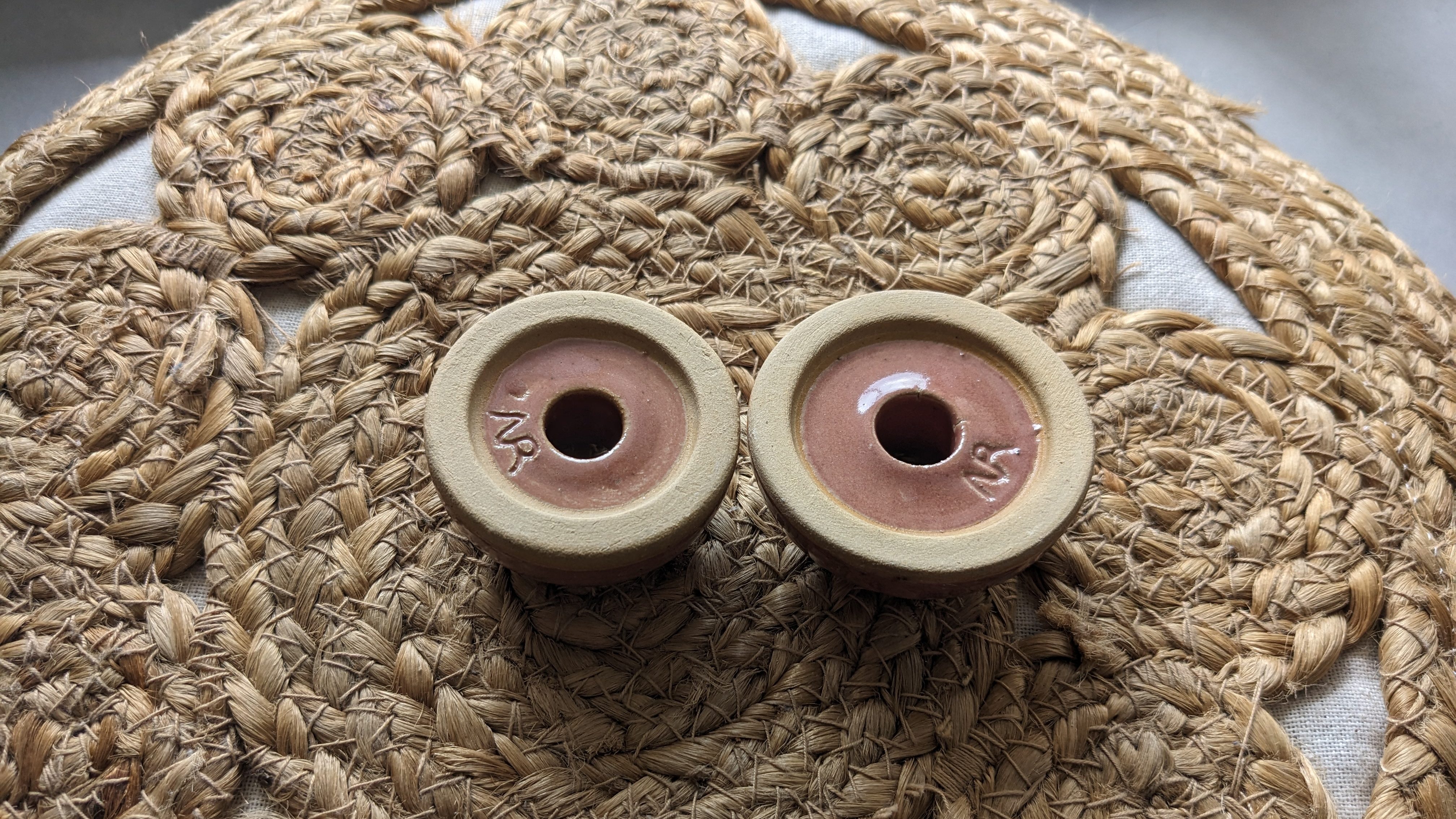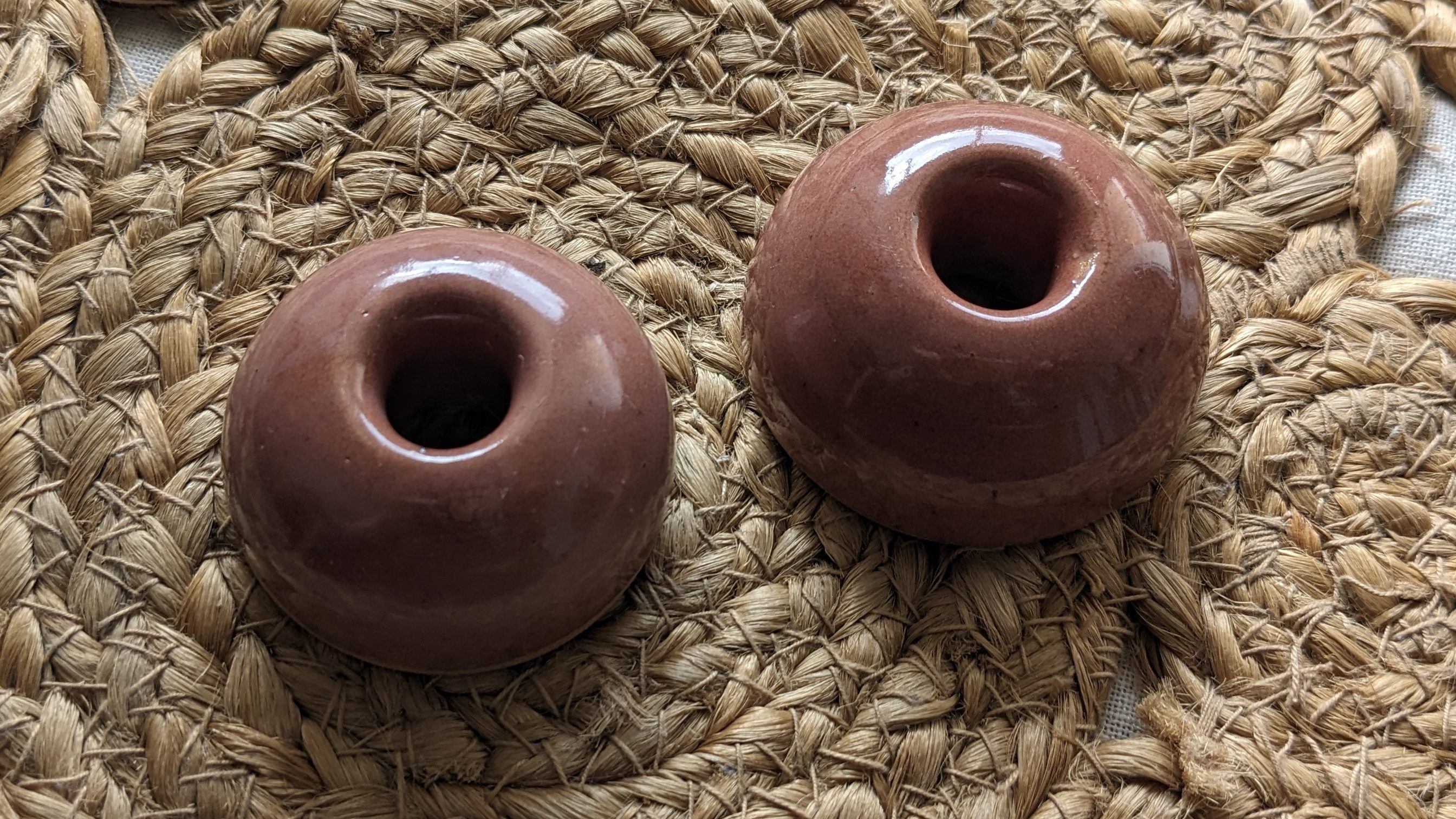 En modelage, vous pouvez même vous offrir le luxe de faire une base carrée, ou triangulaire, ou autre… Les étapes restent les mêmes : faire la forme de votre choix, percer le centre sur toute la hauteur. Et travailler éventuellement le dessous pour former un pied (optionnel). Et voilà, le tour est joué !