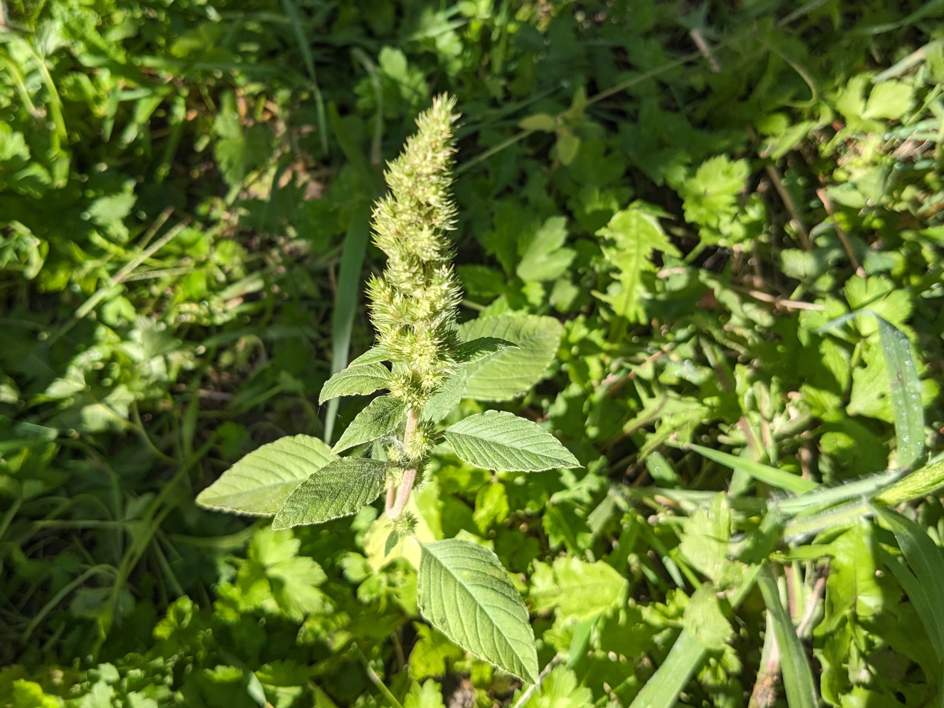 Voici la dernière adventice que je vais vous présenter aujourd’hui, il s’agit de l’amarante réfléchie. La plus supportable de toutes, de loin. Car elle se développe à rythme normal (comme une potagère disons), et concurrence peu les plantes voisines.