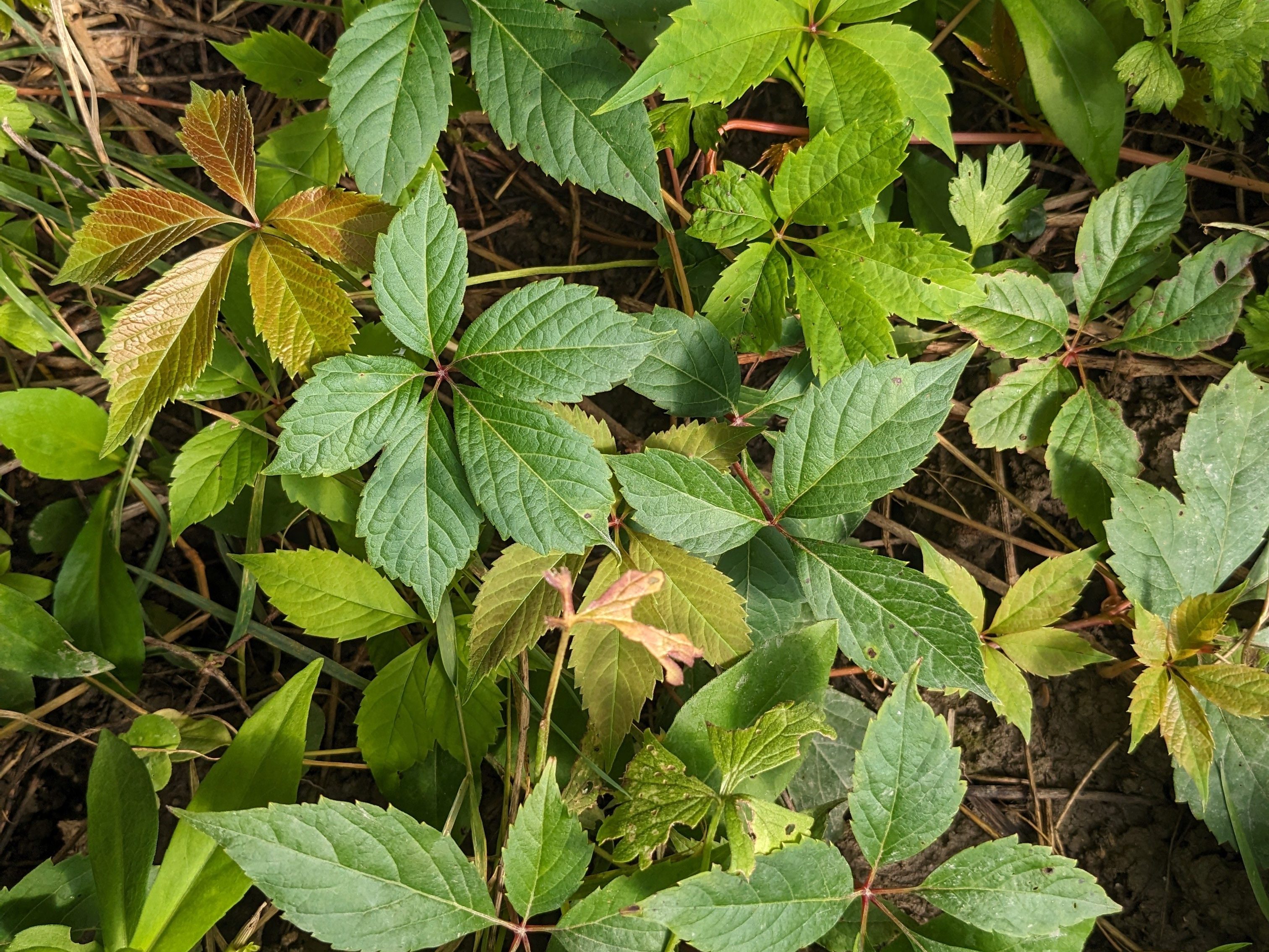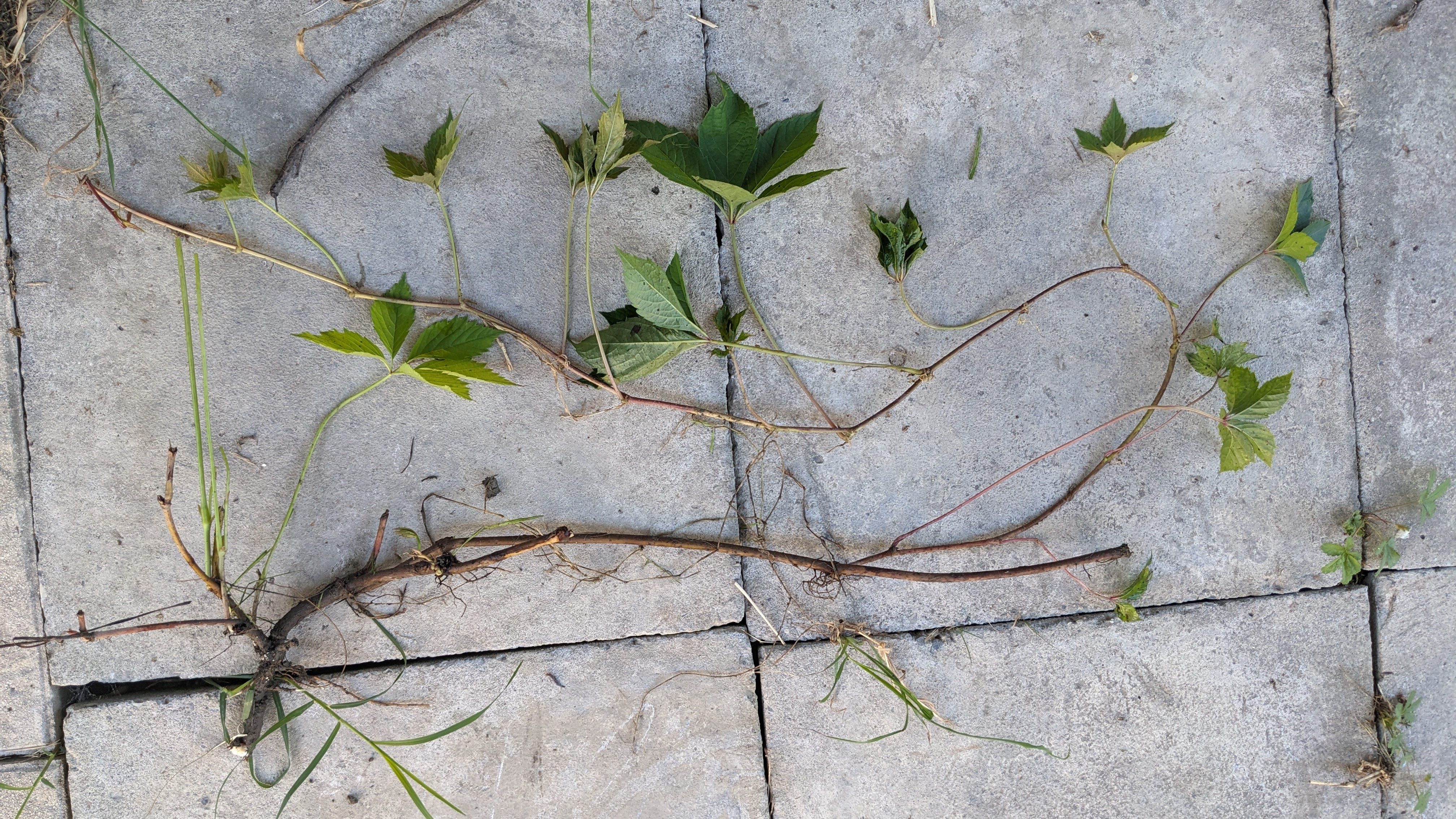 Comme son nom l’indique, ses feuilles sont composées de cinq (parfois trois ou sept) folioles, à bords à longues dents. Et au niveau du départ de chaque feuille sur la tige se trouve soit une vrille, soit une inflorescence.