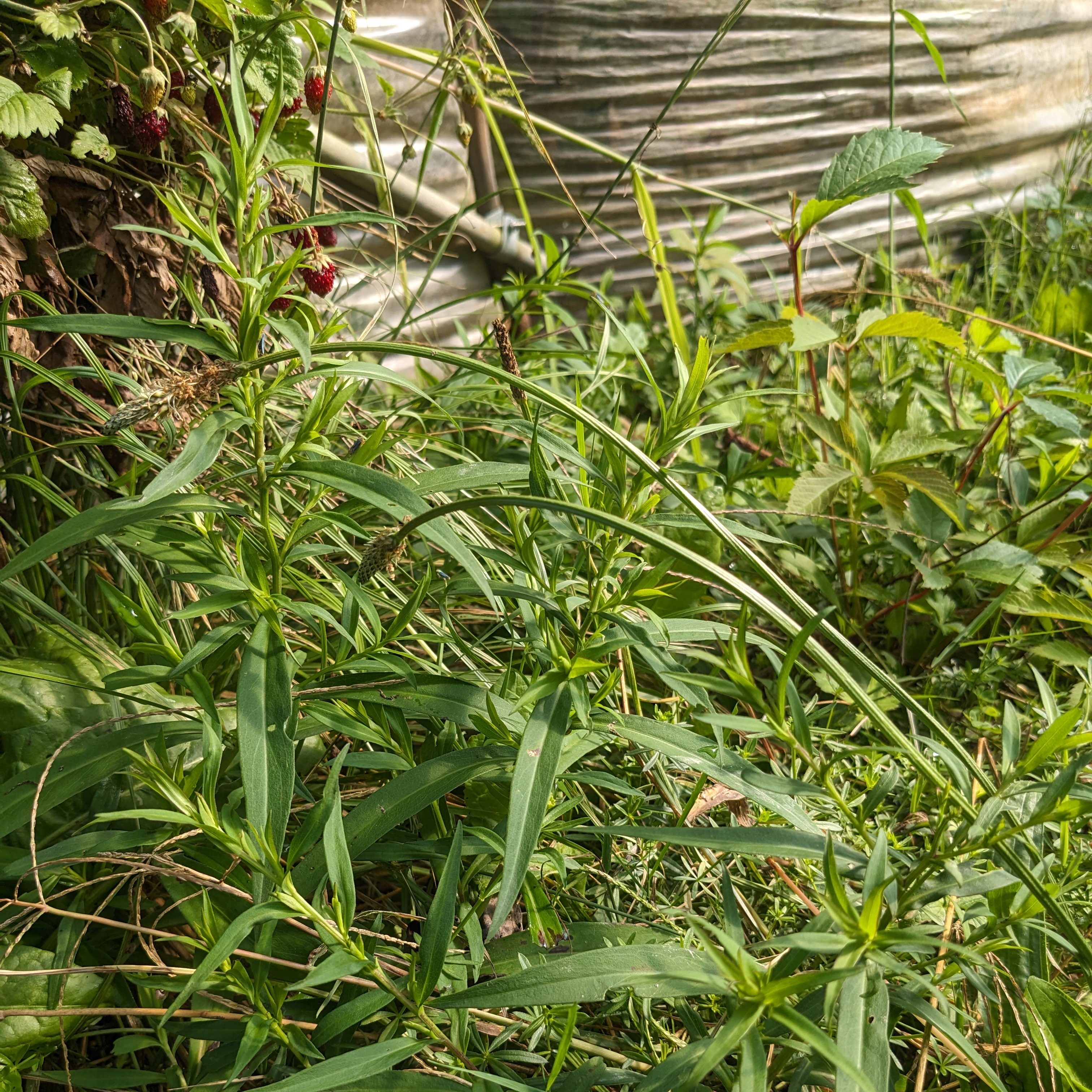 Et voici l’aster des jardins (sous les fraises, au milieu d’autres adventices):